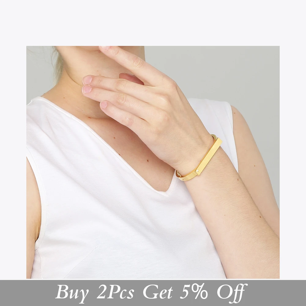 Enfashion Personalized Custom Engrave Name Bangle Flat Bar Cuff Bracelet Gold Color Bracelets For Women Bracelets Bangles B8717 Specifications