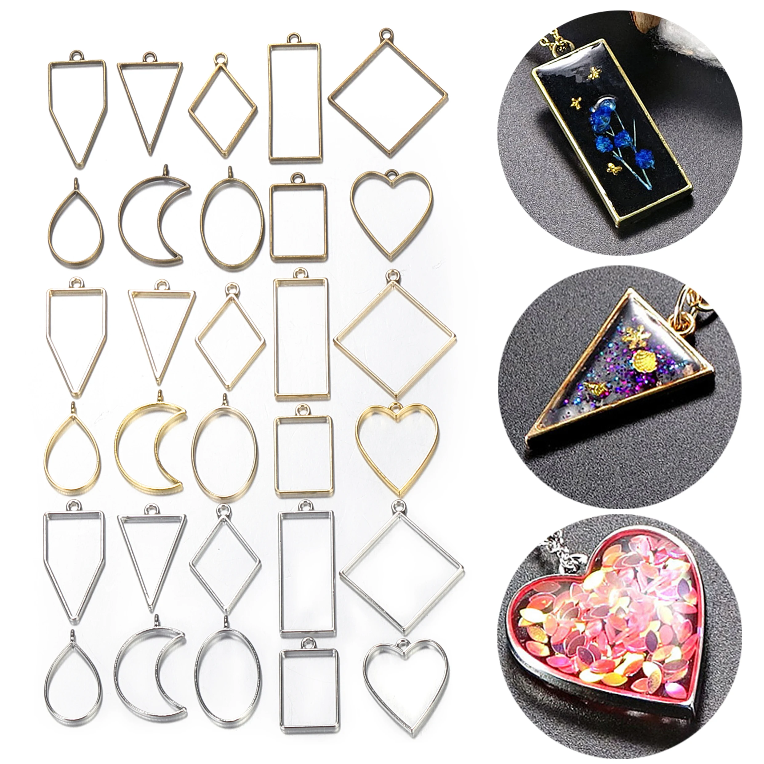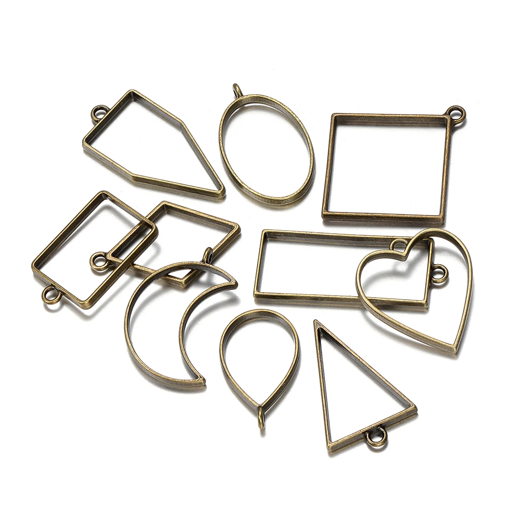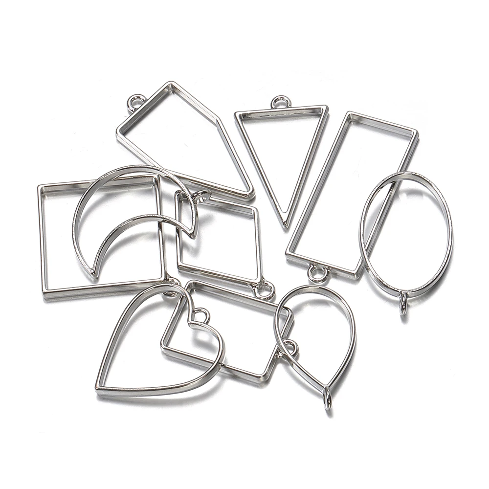 Gallery of 10pcs Metal Geometric Frame UV Epoxy Resin Mold Tools for Jewelry Making Heart Oval Round Pendant Charms Accessories Crafts DIY