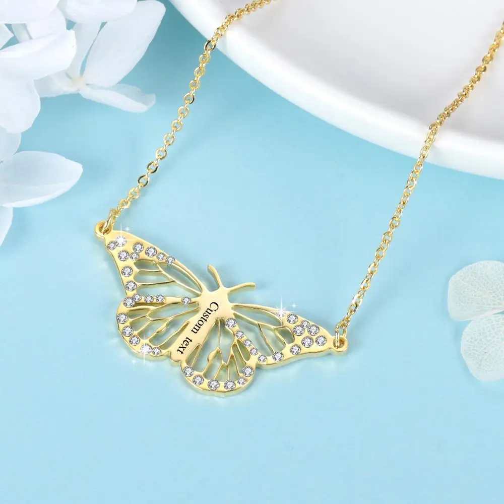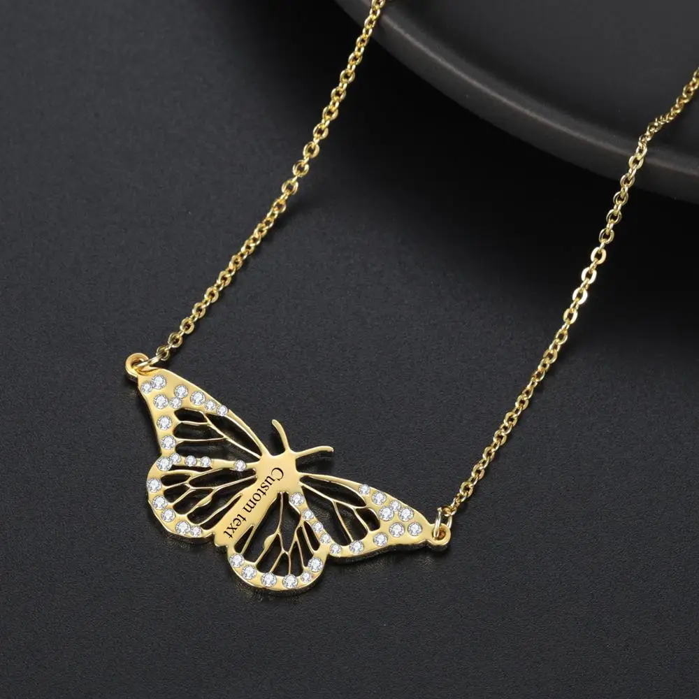 Images of Custom Personalised Name Butterfly Necklace Pendant Engraving Name Necklace For Women Iced Out Chokers Gift Bling Bling Jewelry