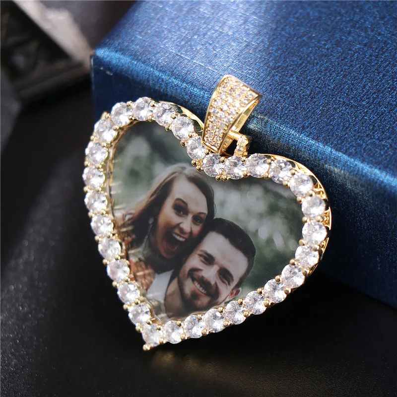 Addition Information of Heart Shaped Custom Photo Necklace Personality Zircon Rhinestone Pendant Gold Chain Hip Hop Rock Fashion Men&Women Gift Jewelry