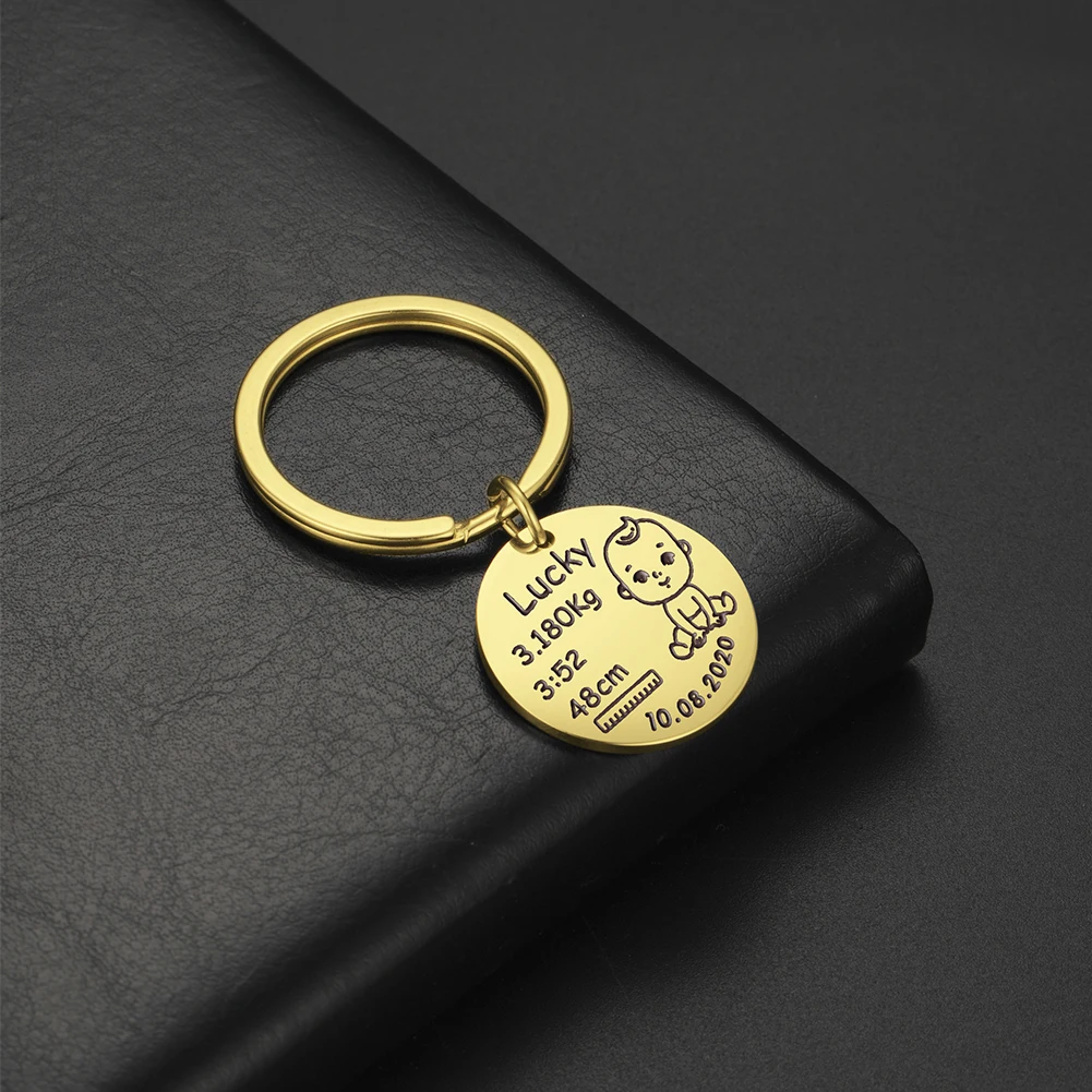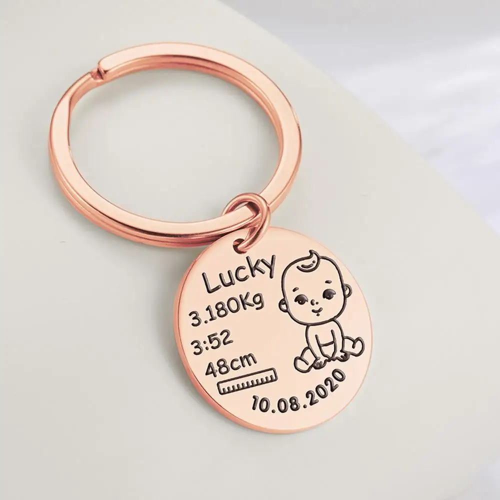 Promo Personalized Keychain Boy Girl Kid Baby Name Date Weight Height For Newborn Commemorate New Mom Dad Gift Keyring Custom Jewelry Reviews