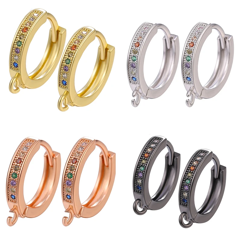 Juya Hand made Fashion Earrings Making Cubic Zirconia Gold Silver Color Basic Bails Earring Hook Clasps Accessories Supplies