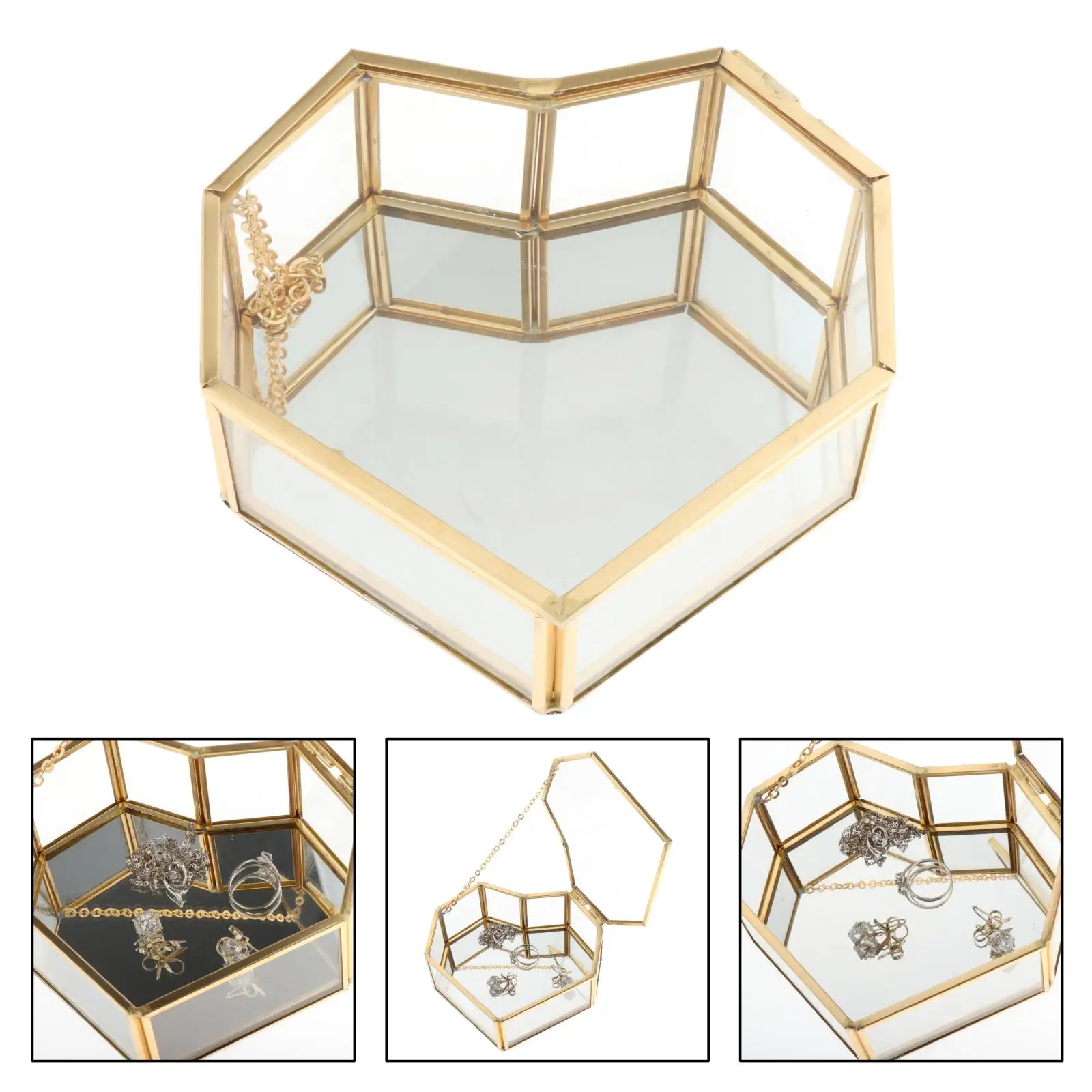 Glass Jewelry Box, Jewelry Display Organizer Keepsake Box Home Decorative Box Case for Storage Trinket Ring Earring Details