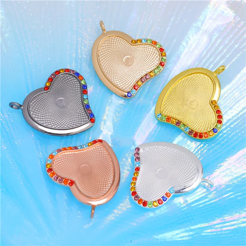 Best 20PCS Crystal Heart Pendant Bases Alloy Blank Tray Jewelry Making For DIY Handmade Necklace Keychain Crafts Findings Accessories Limited Edition