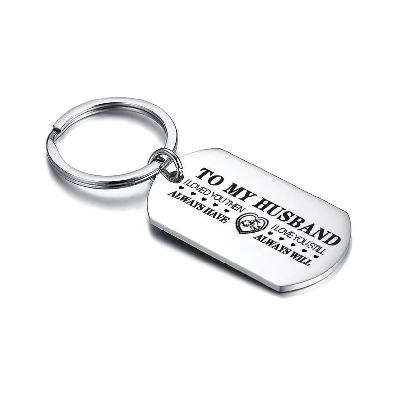 Gallery of Vnox Classic Key Chain Ring for Men Smooth Surface Never Fade Stainless Steel Keychain TO HUSBAND Love Expression Custom Gift