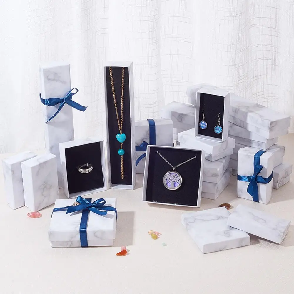 Gallery of pandahall 24pcs Cardboard Jewelry Set Bracelets Necklaces Ring Boxes Square Rectangle Kraft Cotton Filled Cardboard Paper White
