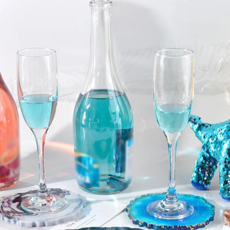 Addition Information of Crystal Epoxy Resin Mold Coaster Irregular Wave Cup Pad Casting Silicone Mould with Foil Flakes Measure Cup Wood Sticks