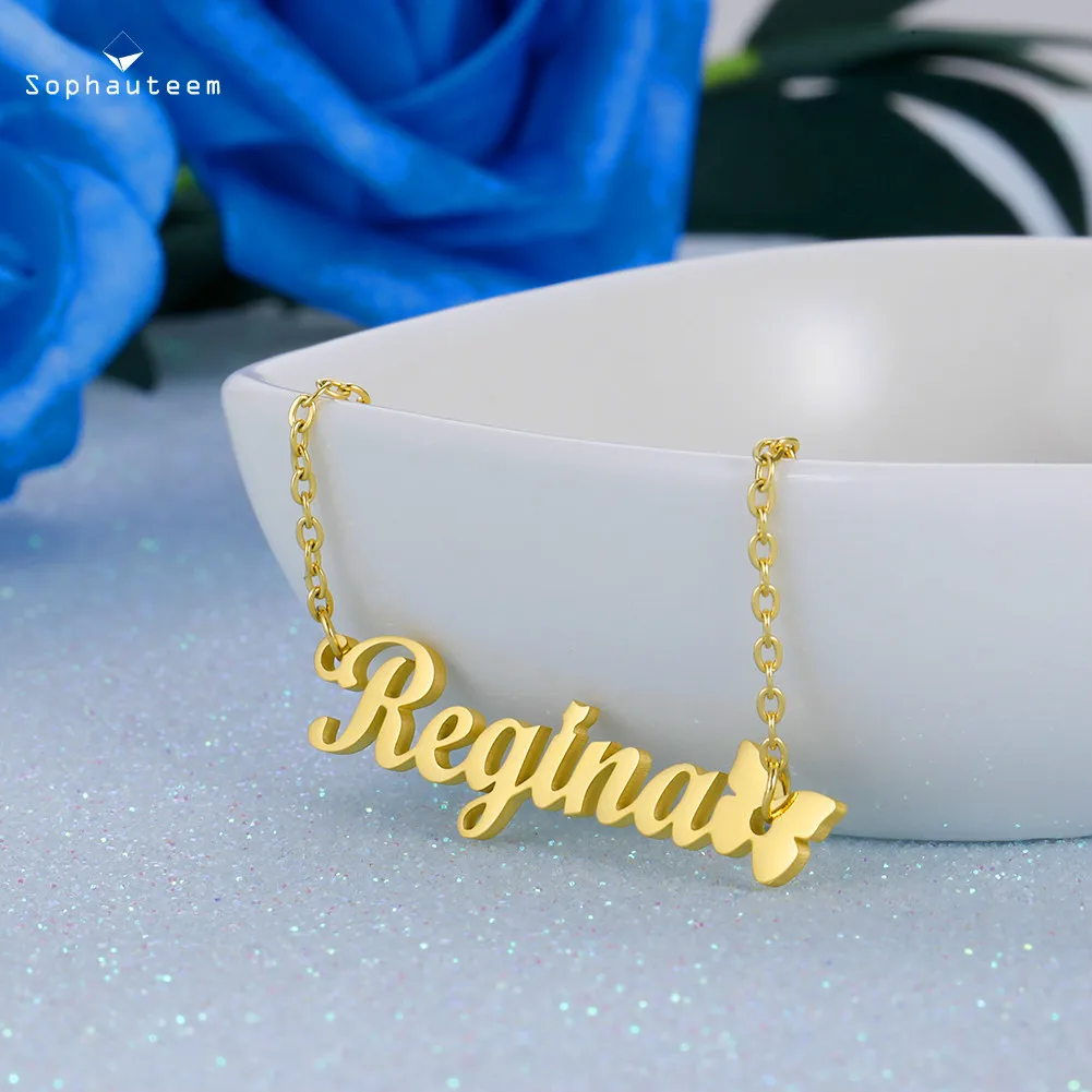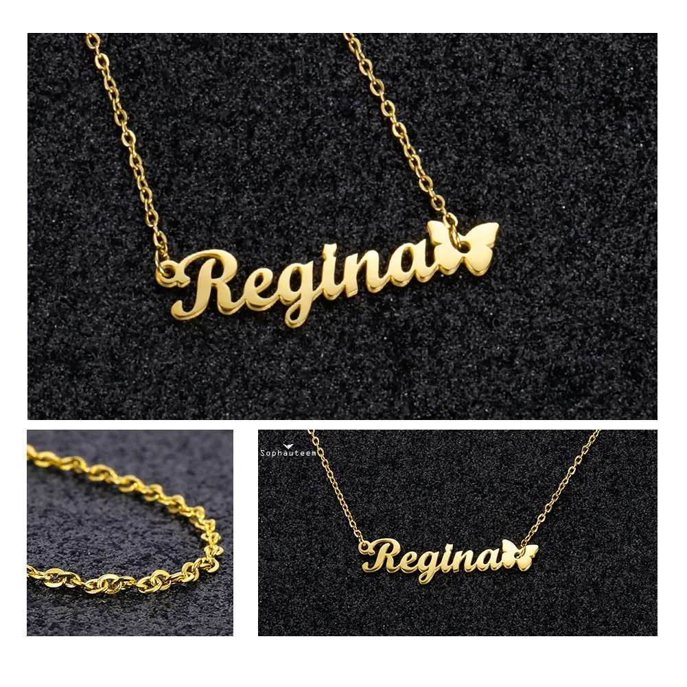 Cute Butterfly Custom Name Necklace for Women Personalised Letter Pendant Necklace Gold Sliver Color Link Chains Choker Necklace Features