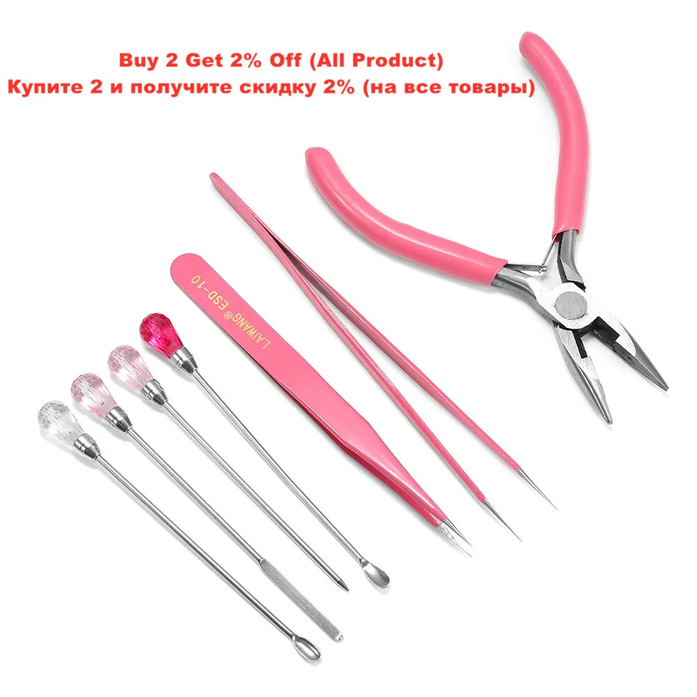 Addition Information of 6Style Pink Jewelry Making Tool Kits Round Nose Plier Side Tweezers Mix Needle Spoon Tool for DIY Jewelry Making Needlework Tool