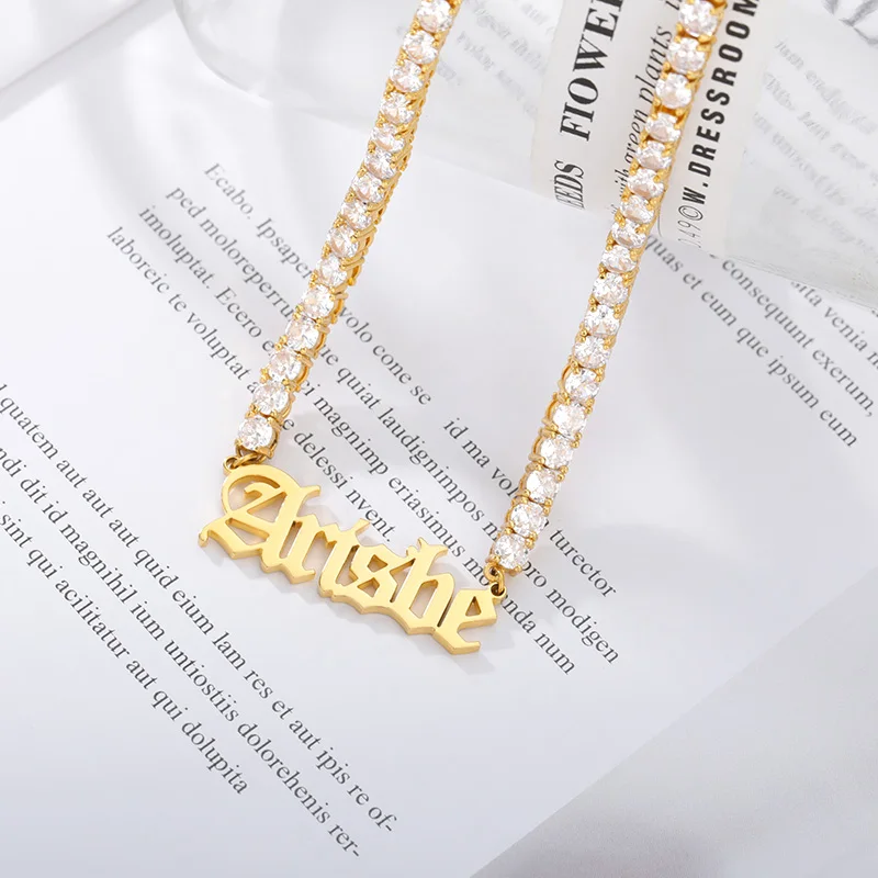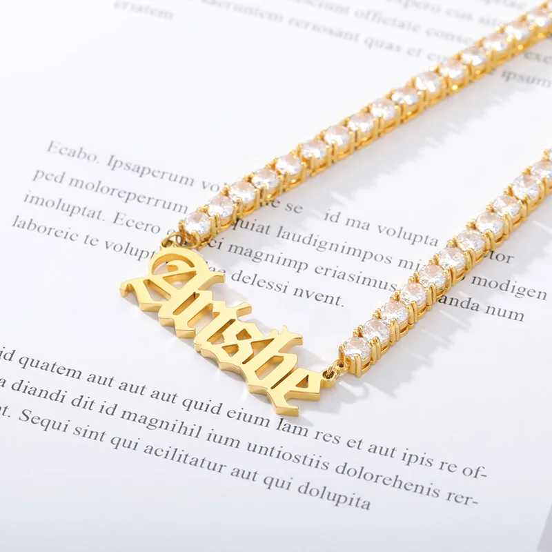 Gallery of Personalized Custom Name Necklace For Women Customized Letter Zircon Tennis Chain Necklace Men's Hip Hop Stainless Steel Jewelry