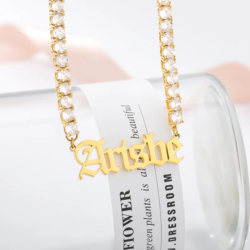 Addition Information of Personalized Custom Name Necklace For Women Customized Letter Zircon Tennis Chain Necklace Men's Hip Hop Stainless Steel Jewelry