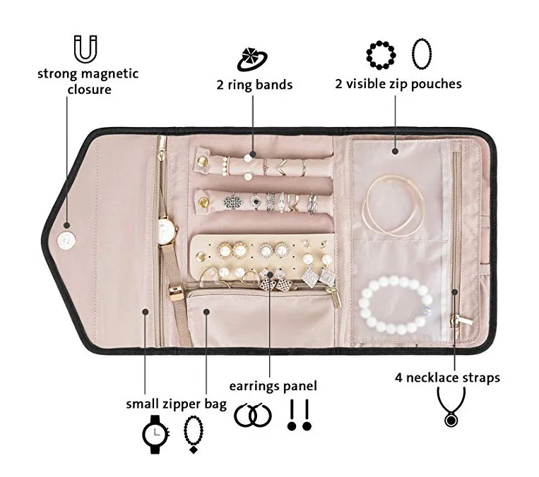 If You will buy for Jewelry Packaging , then Travel Jewelry Organizer–Foldable Roll for Necklaces, Earrings -Jewelry Holder Compartments Journey Jewelry Case Storage KL3DH-3 may be make you like