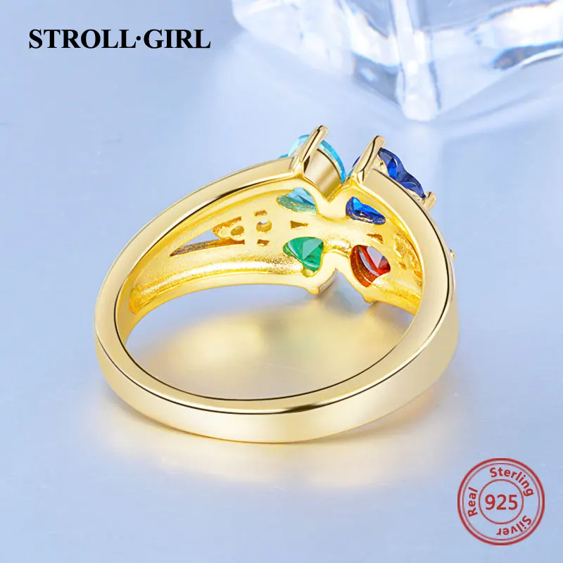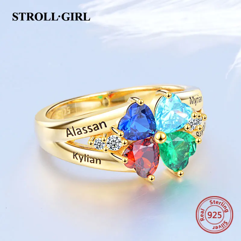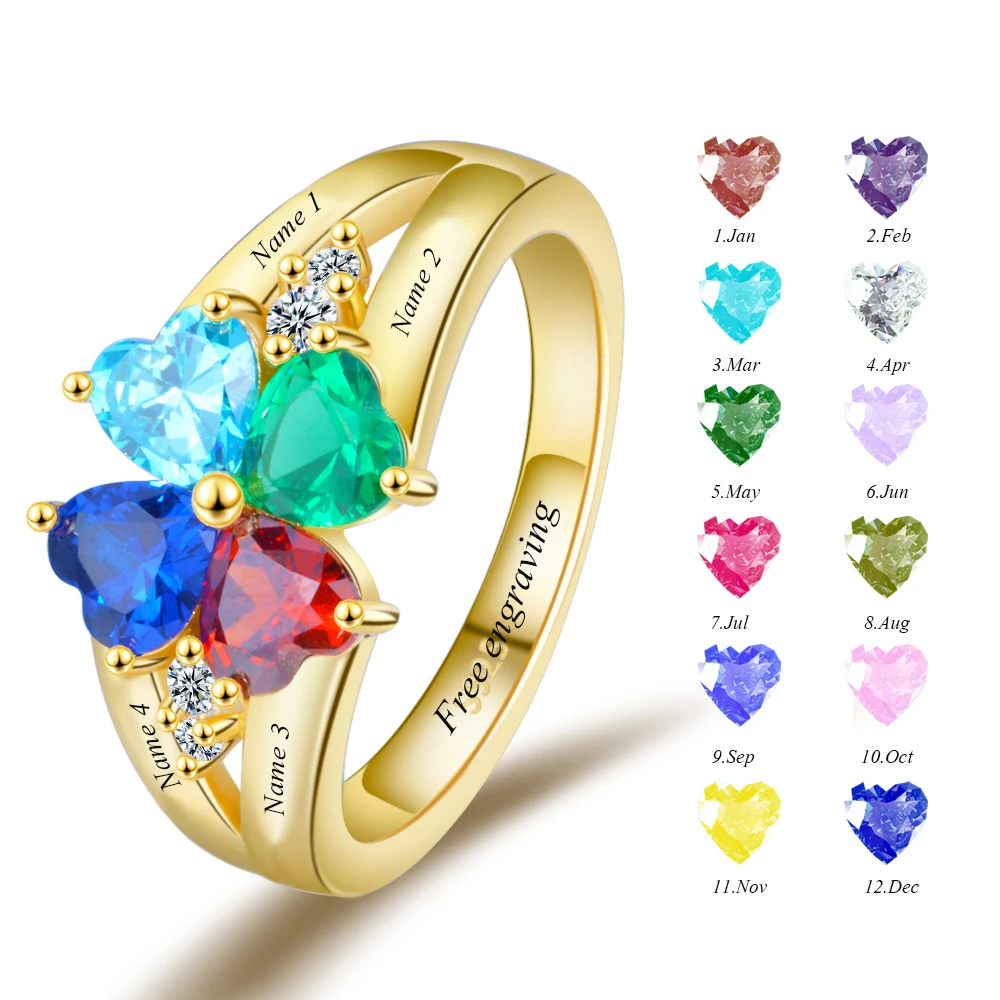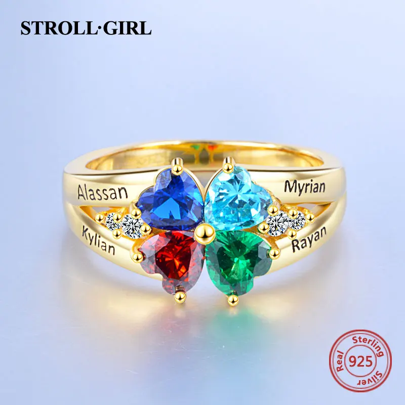 Personalized Heart Birthstone Rings Custom Engraved 4 Names Finger Rings for Women 925 Sterling Silver Jewerly Gift Wholesale Features