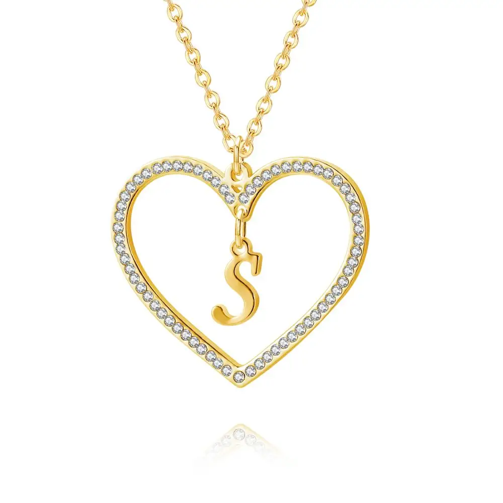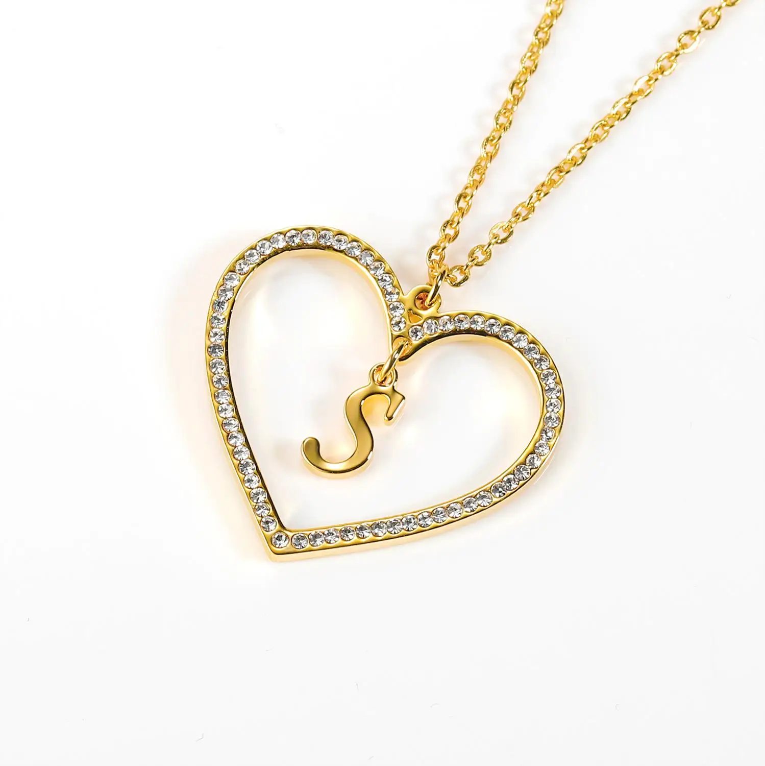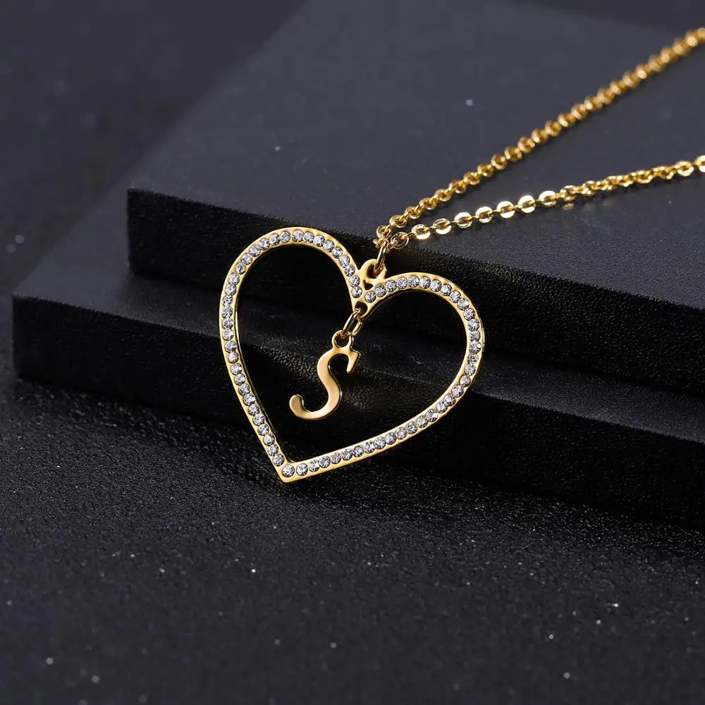 Images of Custom Romantic Gold Color Love Heart Crystal Pendant Letter Name Necklace Charm Women 26 Hip hop Capital Letters Choker Jewelry
