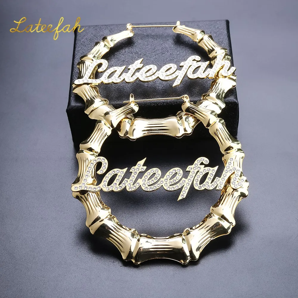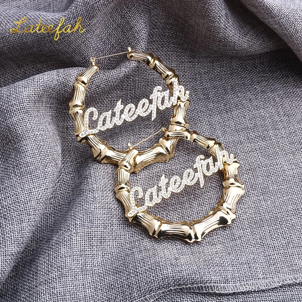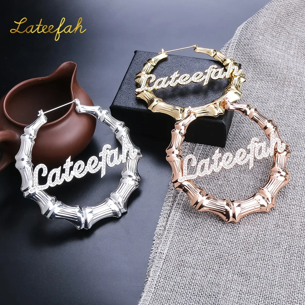 Lateefah Fashion New Zircon Letter Popular Earrings Custom Bamboo Style Hoop Personality Vintage For women Jewelry