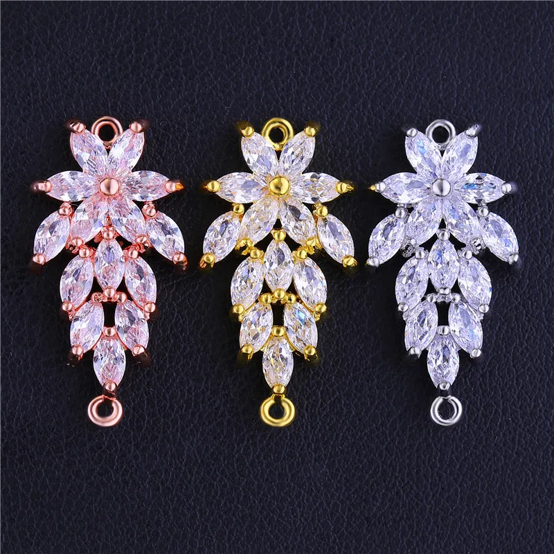 Juya DIY Bracelet Earrings Jewelry Making Supplies Handmade Cubic Zirconia Flower Geometric Rhombus Charm Connectors Accessories Specifications