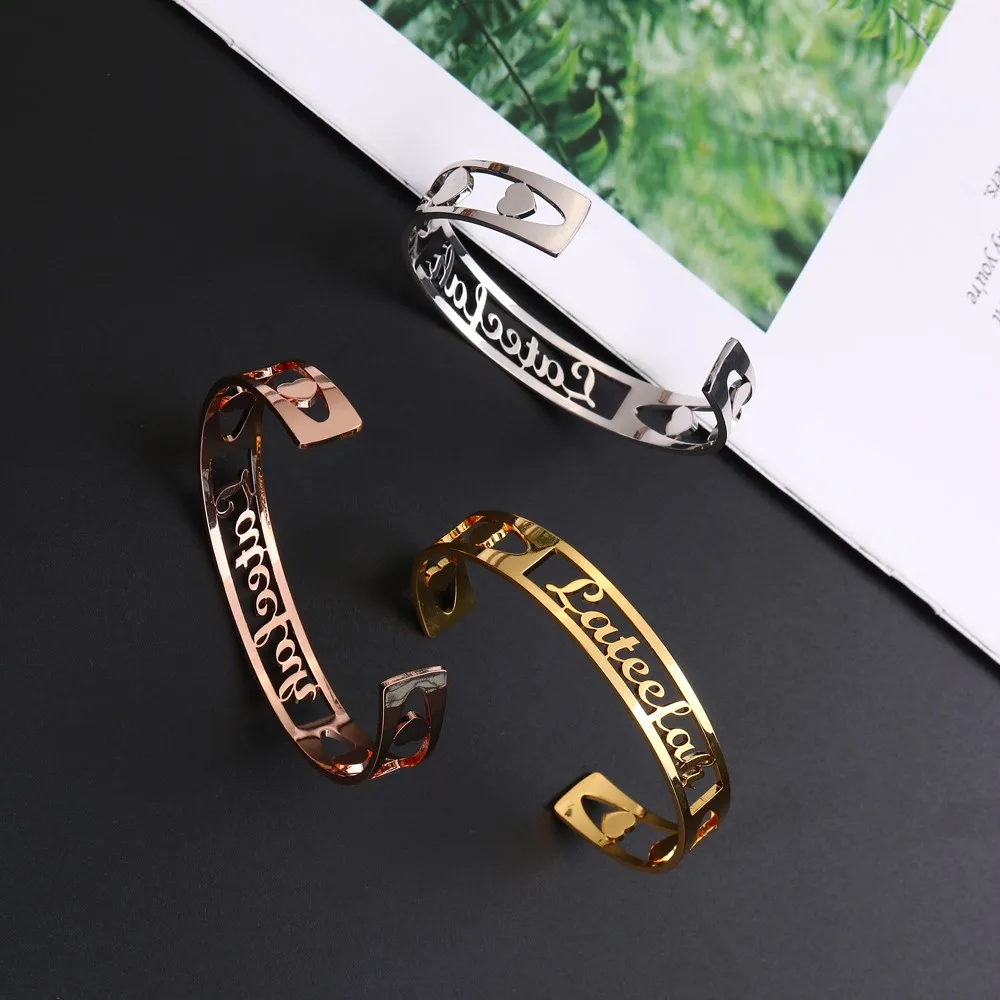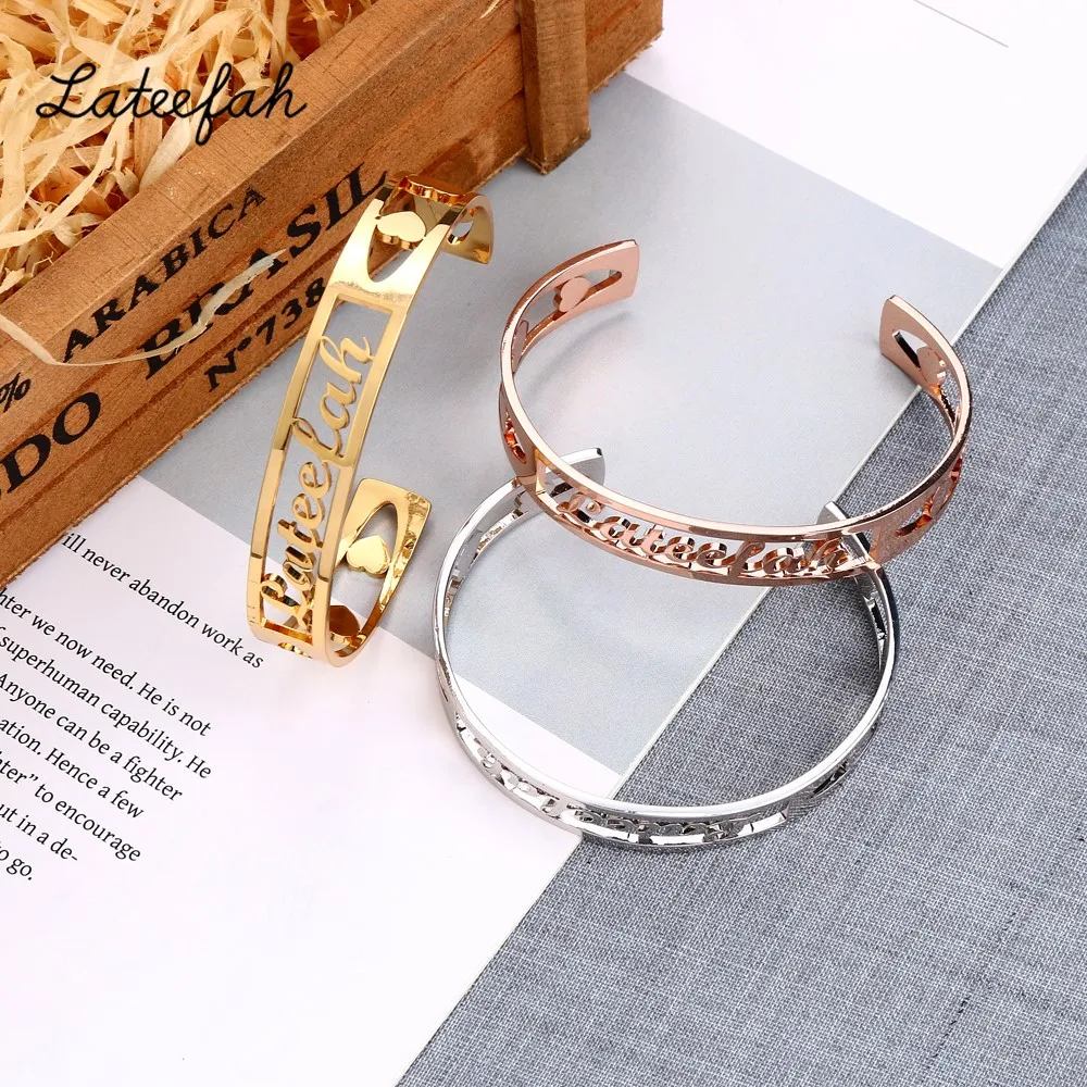New Lateefah Customized Nameplate Name Bracelet Personalized Custom Cuff Adjustable Bangles Women Rose Gold Stainless Steel Jewelry Reviews