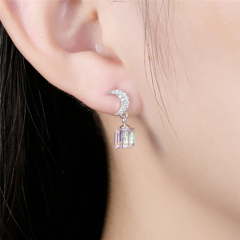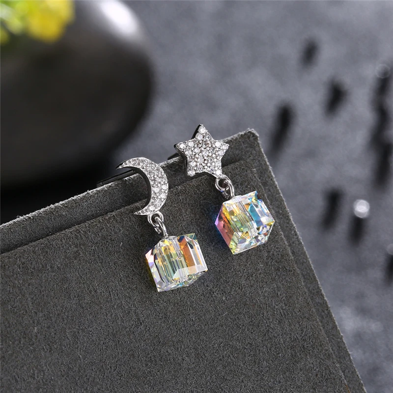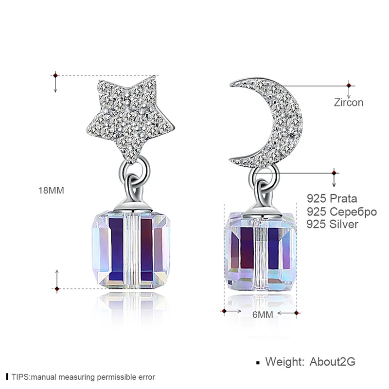 DOTEFFIL 925 Sterling Silver Star Moon AAA Zircon Square Crystal Pendant Earrings For Women Wedding Gift Fashion Jewelry Features