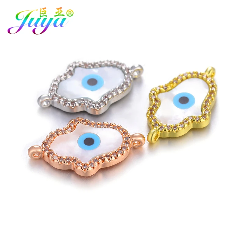 Juya DIY Turkish Eye Jewelry Findings Hamsa Cross Greek Evil Eye Shell Charm Connectors For Women Needlework Jewelry Making Details