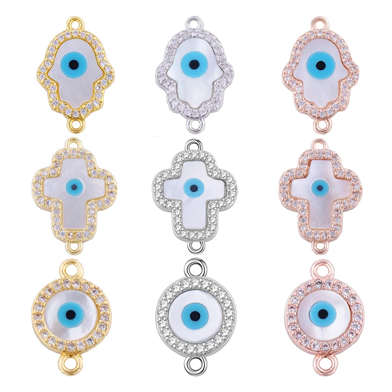 Related Product for [KEYWORD] and Juya DIY Turkish Eye Jewelry Findings Hamsa Cross Greek Evil Eye Shell Charm Connectors For Women Needlework Jewelry MakingEach circle has a zircon Rectangular Micro insert jewelry
