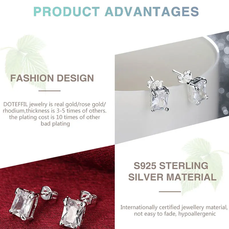 Addition Information of DOTEFFIL 925 Sterling Silver Rectangle AAA Zircon Earrings High Quality Charm Women Fashion Jewelry Wedding Party Gift