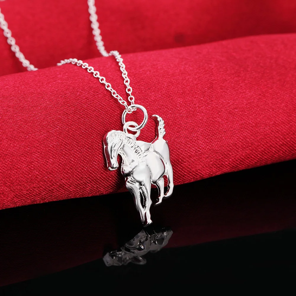 Gallery of DOTEFFIL 925 Sterling Silver 18 Inches Hanging Horse Pendant Necklace For Women Man Fashion Wedding Party Charm Jewelry