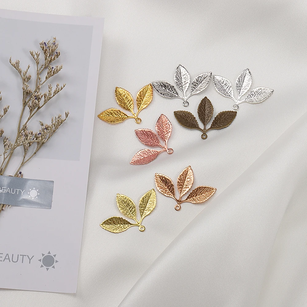 Sale 20pcs Three Leaf Flower Motif Charms Pendants Hair Hoop Bracelet Necklace Charms Accessories for Jewelry Making Findings DIY Limited Edition