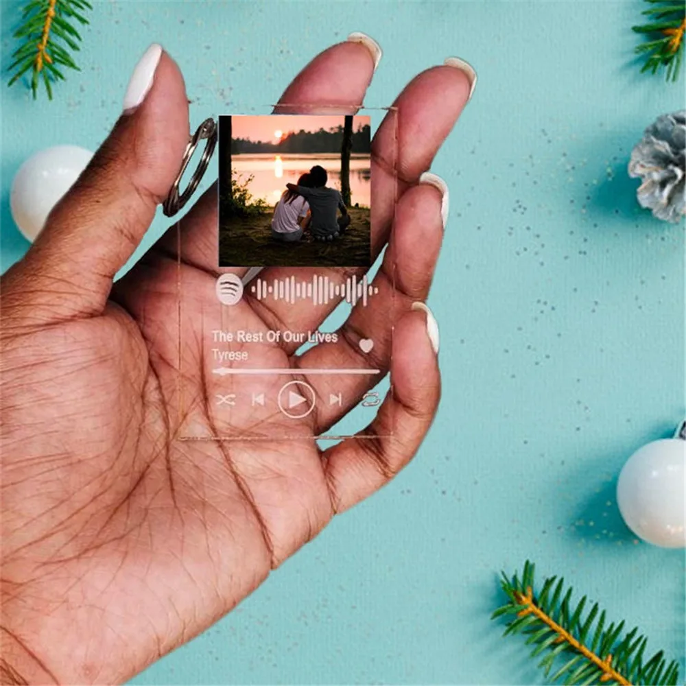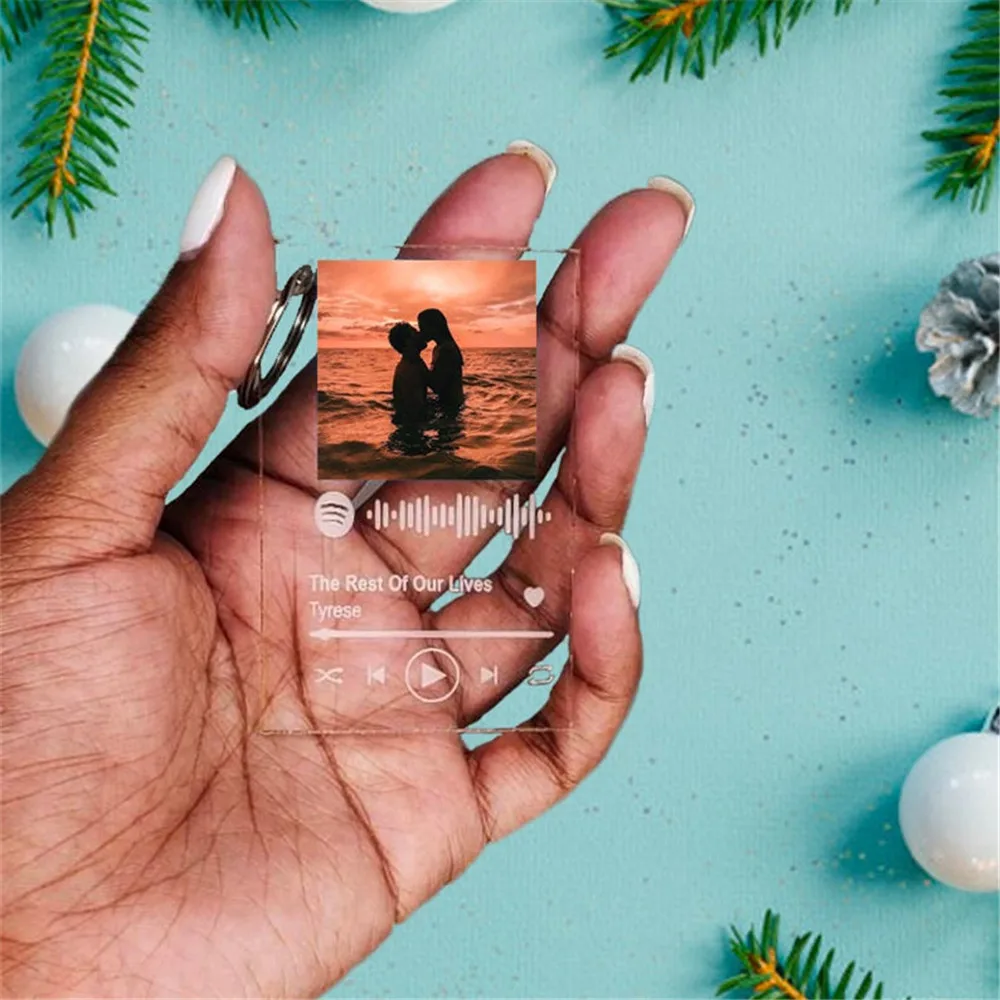 Images of Personalized Music Spotify Code Album Cover Couple Photo Keychain Acrylic Keyring Custom Song Code Christmas Jewelry Gift