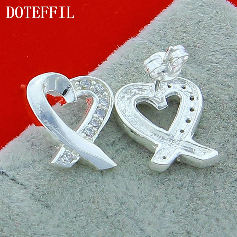 Promo Hot Sales 925 Sterling Silver Stud Earrings Noble Woman Attractive Woman crystal Heart Earrings Fashion Simple Free Shipping Limited Edition