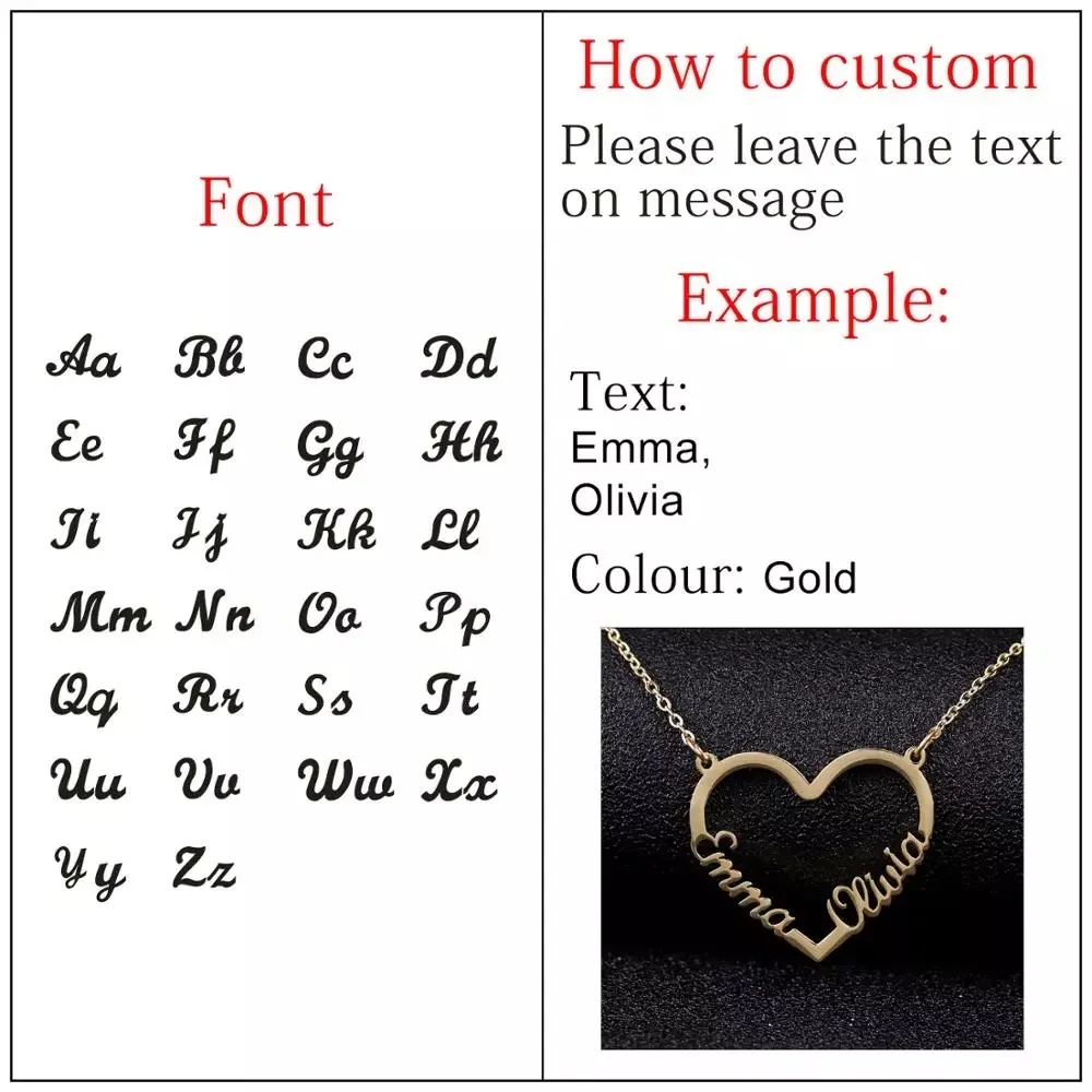 Addition Information of Personalized Letters Stainless Steel Name Necklace Heart Pendant Customized Jewelry Gifts For Women Chain Charm